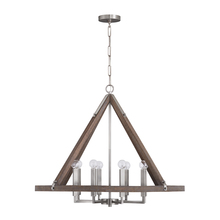 6-Light Pendant in Hand-distressed Patinaed Brass and Handcrafted Mango Wood