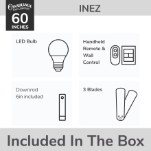 Infuse a touch of modern sophistication into your outdoor spaces with the Inez Outdoor Ceiling Fan. Designed with energy efficiency in mind, this ENERGY STAR® certified fan is 64% more efficient, powered by a whisper-quiet 6-speed Eco Whisper DC motor. Perfectly damp-rated for covered patios or porches, it ensures long-lasting performance. Illuminate your evenings with an included 20W energy-efficient LED bulb, all controlled seamlessly with the included wall control. Stylish and functional, the Inez fan transforms your outdoor space into a serene retreat while saving energy. Make your outdoor moments unforgettable with effortless comfort and style.
