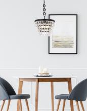Like the sun setting on a frozen lake, this collection shimmers with tiers of icy crystals reflecting the soft glow of the candelabras. True to its Nordic namesake, the cascades of royal-cut clear crystals complement the etched black finished frame. Suspended by an elegantly looped chain that draws the eye to the cool sheen below.