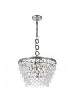 - Tiers of royal-cut clear crystals reflect the soft-glow of 5 candelabra bulbs