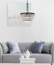 Like the sun setting on a frozen lake, this collection shimmers with tiers of icy crystals reflecting the soft glow of the candelabras. True to its Nordic namesake, the cascades of royal-cut clear crystals complement the etched black finished frame. Suspended by an elegantly looped chain that draws the eye to the cool sheen below.