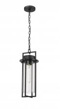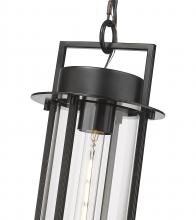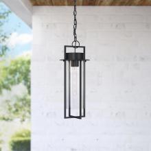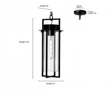 A bold steel framework encases a sparkling clear glass cylinder, giving the Russell Collection a unique appearance. These outdoor sconces are single, downward-facing lights that combine sleek styling with a powder coat black finish. Vintage-style elongated Edison bulbs will complete the look for an exciting addition to any entryway.