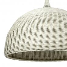 Kirk Nix Collection. Oversized pendant with hand-woven synthetic wicker accented with a synthetic hand-twisted rope hanger all in a whitewash color. Pendant comes with a shiny steel finished metal chain and canopy hanging kit. Suitable for covered outdoor